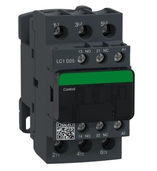 کنتاکتور Schneider مدل LC1D25 از سری TeSys D، یک کنتاکتور صنعتی قابلاعتماد برای کنترل بارهای موتوری تا 25 آمپر (AC3) میباشد. این محصول با طراحی حرفهای، طول عمر بالا و کیفیت ساخت عالی، گزینهای مطمئن برای تابلوهای برق صنعتی، سیستمهای کنترل، تهویه و ماشینآلات صنعتی است .